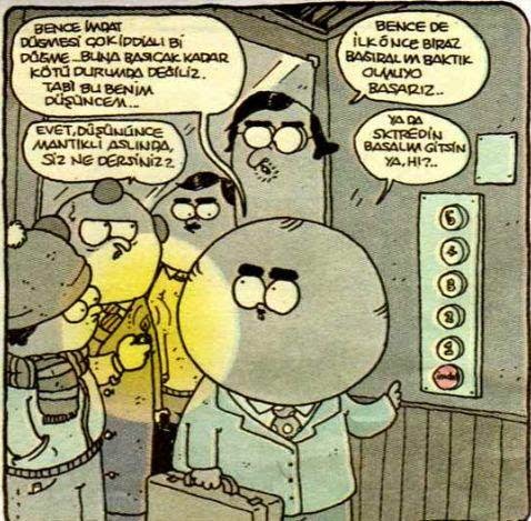 Mekan: Üsküdar İslam Cumhuriyeti. Meydanda üç kişi soL gazetesi satıyoruz. Koltuğunda Fakit gazetesi olan türbanlı bir cisim (gözlerini kısarak ve sessizce): Şerefsizleer!